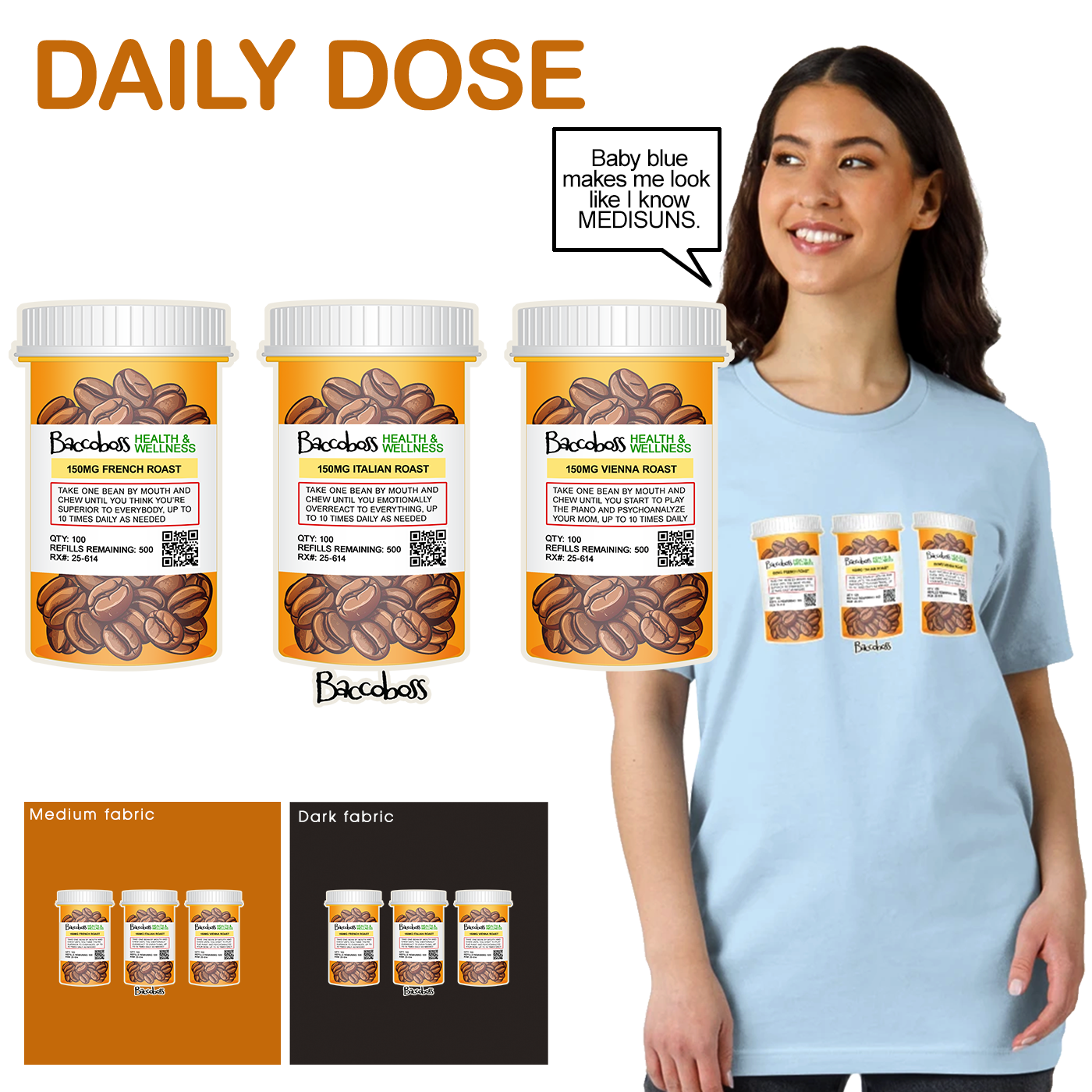 is available in two shirts: Mid-weight (approx. 4.3oz) 100% cotton "Essential" tee that gets softer the more you wash it, and a lightweight "Tri Blend" tee for all day wearability.